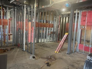 • Approximately 80% of the mechanical, electrical, and plumbing rough-ins have been finished.